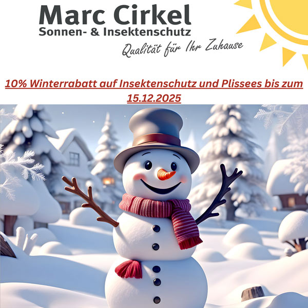 Unser Winter-Highlight: 10 % Rabatt! Nur bis zum 15.12.2025 schenken wir Ihnen 10 % Winterrabatt auf unseren exklusiven Insektenschutz und elegante Wabenplissees. Jetzt ist der perfekte Moment, Ihr Zuhause aufzuwerten - mit schneller Terminvereinbarung und maßgeschneiderten Lösungen, die begeistern. Sichern Sie sich Ihren Vorteil, solange das Angebot gilt!